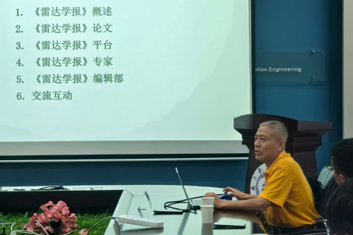 2024年8月30日,应毕辉老师的邀请,《雷达学报》编辑部主任贾守新老师来我校进行学术交流,并在电子信息工程学院楼209会议室做了题为“搭建学术平台 服务南航师生——《雷达学报》南航汇报会“的学术报告。本次报告由毕辉老师主持,相关专业领域的教师以及学生到场聆听。